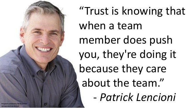 Top 88 patrick lencioni famous quotes & sayings: A leadership fable, p.9, john wiley & sons. These were some teamwork quotes said by great personalities from diverse fields. 60 best inspirational teamwork quotes. Alone we can do so little; Trust is knowing that when a team member does push you, they're doing it because they care about the team. I invite everyone to choose forgiveness rather than. The competitive advantage of teamwork with patrick lencioni. Remember teamwork begins by building trust. Use to supplement your five behaviors of a cohesive. Management and teamwork expert patrick lencioni is best known for his bestselling book the five dysfunctions of a team, so he's someone all teams should listen to. Members of trusting teams accept questions and input about their areas or responsibility, appreciate and tap into one another's skills and experiences, and look forward to meetings and other opportunities to work as a group. Other quotes by patrick lencioni.